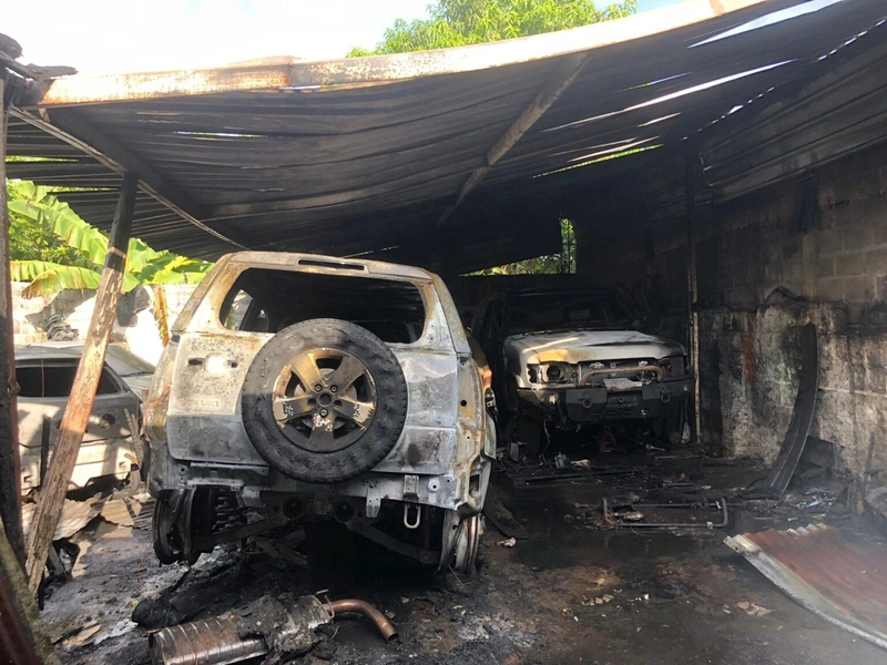 Cinco vehículos que se encontraban dentro del taller terminaron completamente destruidos por el fuego. De acuerdo con versiones preliminares, un posible cortocircuito en uno de los automotores que estaba siendo reparado habría sido el origen de la conflagración.