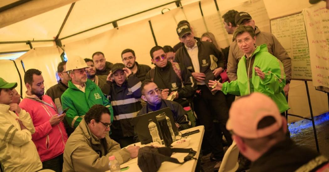 La alcaldesa Claudia López, junto con el Instituto Distrital de Gestión de Riesgos y Cambio Climático – IDIGER, coordina desde el Puesto de Mando Unificado (PMU) en el sector vía a La Calera, la atención a los daños y la población afectada, a la altura del kilómetro seis vía La Calera, tras las intensas lluvias que han caído en el sector en las últimas horas.