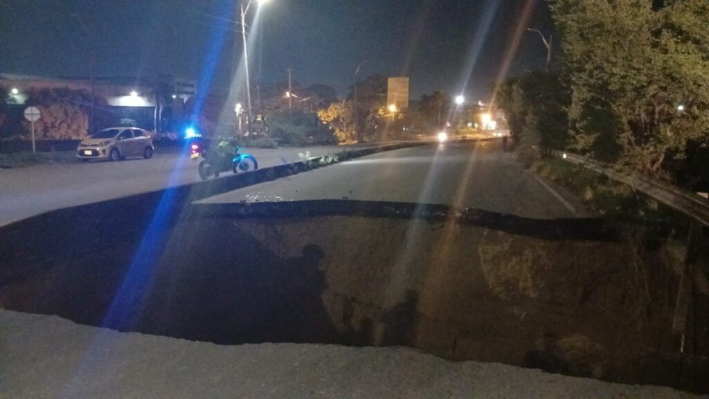 El socavón se abrió en una de las calzadas de la calle 30, en la vía hacia el aeropuerto, en sentido norte-sur, a la altura del puente del INEM, ubicado en Soledad.