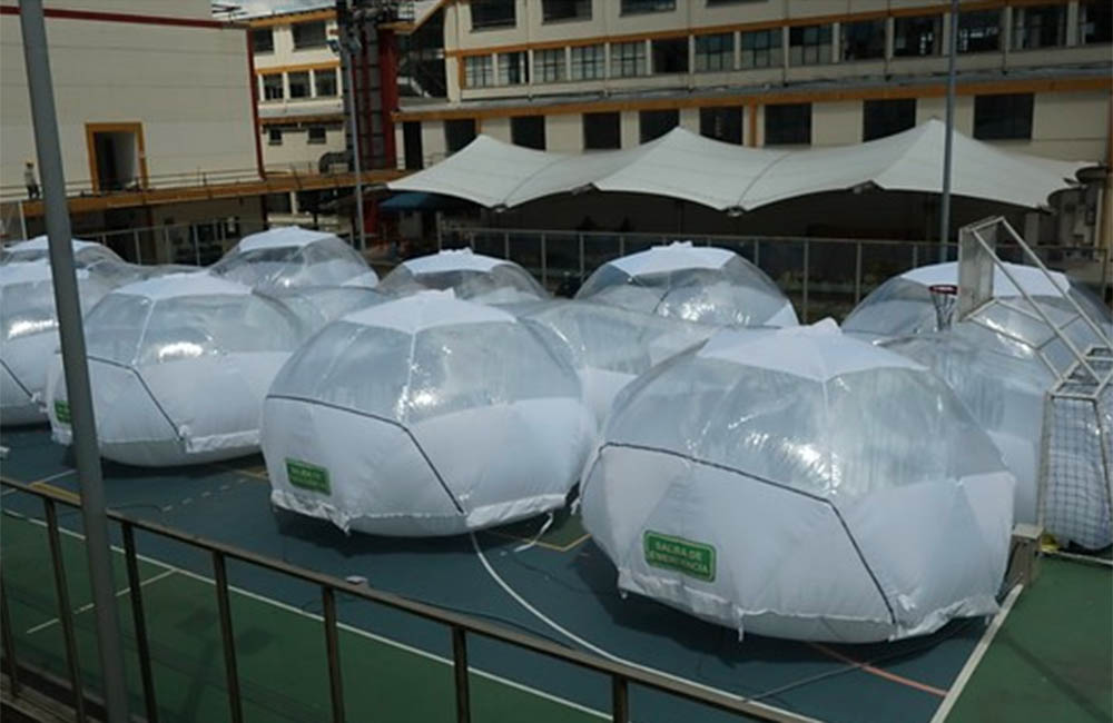 Los domos inflables tienen además la ventaja de permitir tener un contacto con el exterior a los pacientes hospitalizados con covid, pues los domos transparentes les permiten visualizar el exterior.