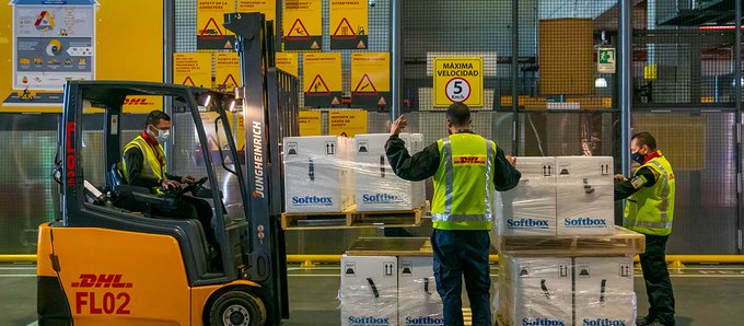 Las vacunas llegaron al Aeropuerto El Dorado de Bogotá, a la 1:24 de la tarde, en el vuelo GB2245 de la compañía de carga DHL, procedente de Miami (Estados Unidos). Tras cumplir el proceso de nacionalización, los biológicos ingresaron a la bodega del Ministerio de Salud en la Zona Franca.