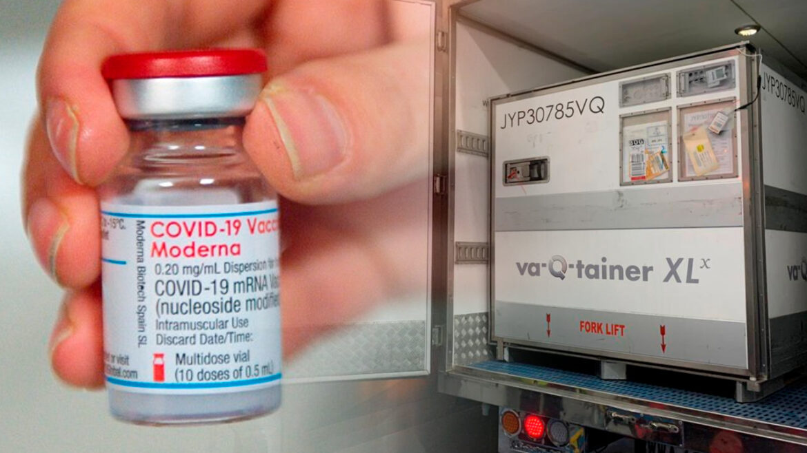 A las bodegas del Ministerio de Salud llegó esta madrugada un nuevo lote de vacunas contra el covid-19 de Moderna.