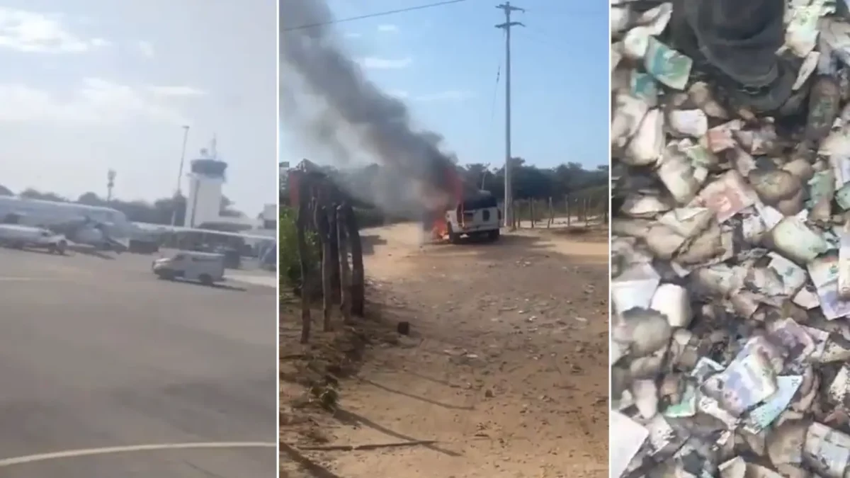 Los Delincuentes ingresaron a la pista y se enfrentaron a bala con guardias para robar varias tulas de dinero. Un vehículo utilizado para el robo fue incinerado por los delincuentes.
