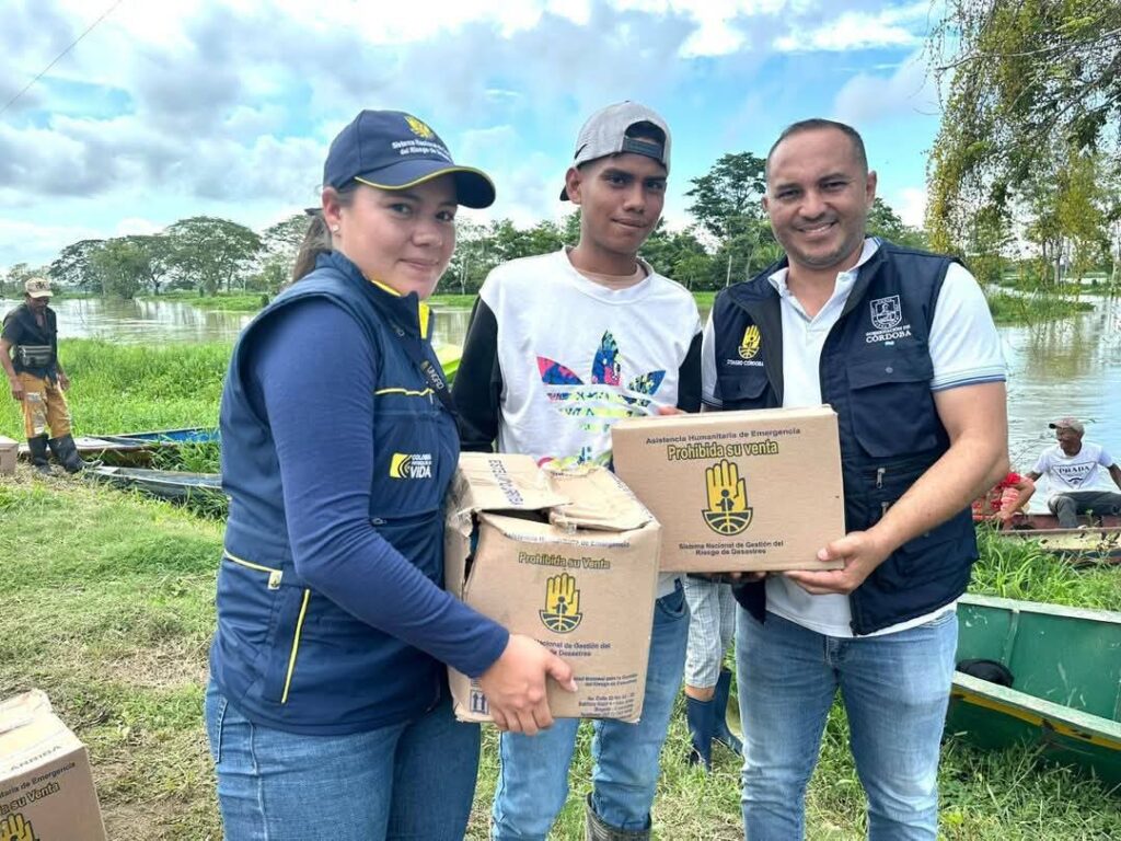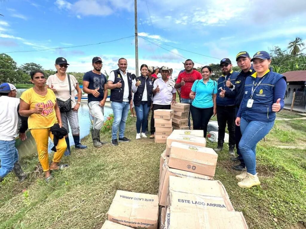 De forma simultánea, la jornada de entregas también llegó al municipio de Los Córdobas, donde se entregaron 100 kits de alimentos y 100 kits de aseo a las familias de los corregimientos Minuto de Dios y Puerto Rey, afectadas también por las fuertes lluvias de las últimas semanas.