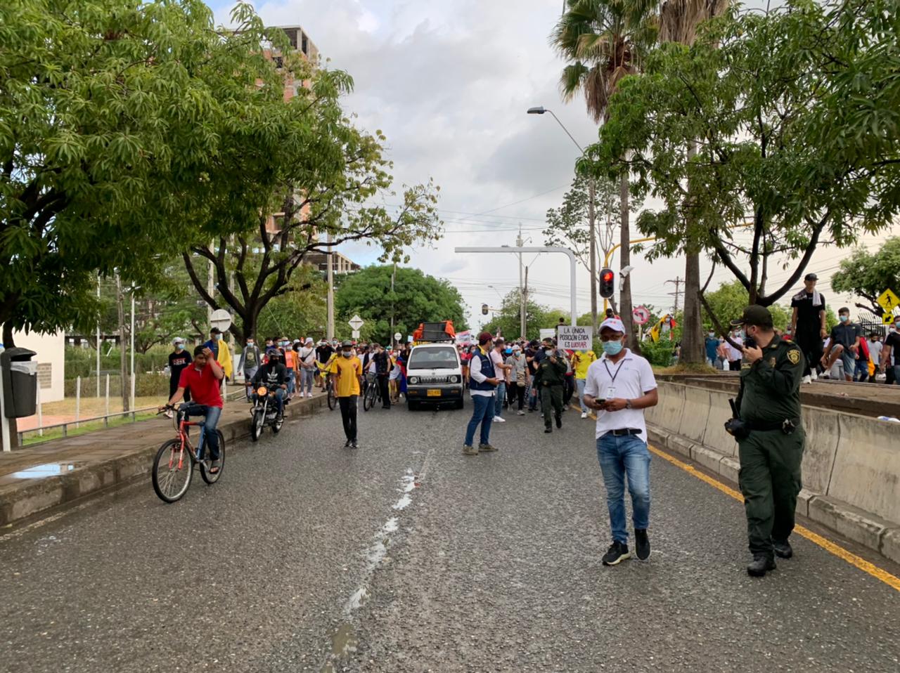 Aunque no se respetó la ruta establecida dentro del PMU, se mantuvo siempre acompañamiento de los Gestores de Convivencia de la Secretaría de Gobierno, Tránsito, Personería, Procuraduría, Defensoría del Pueblo, Comité Permanente por la Defensa de los Derechos y Policía Metropolitana, brindando todas las garantías tanto a los manifestantes como a la ciudadanía que no participó de la manifestación.