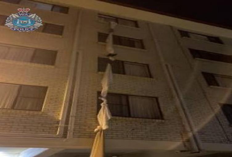 «Trepó por una ventana de la habitación del cuarto piso usando una cuerda hecha de sábanas y huyó de la zona», señala la Policía en su cuenta de Facebook en la que, además, publica varias fotografías.