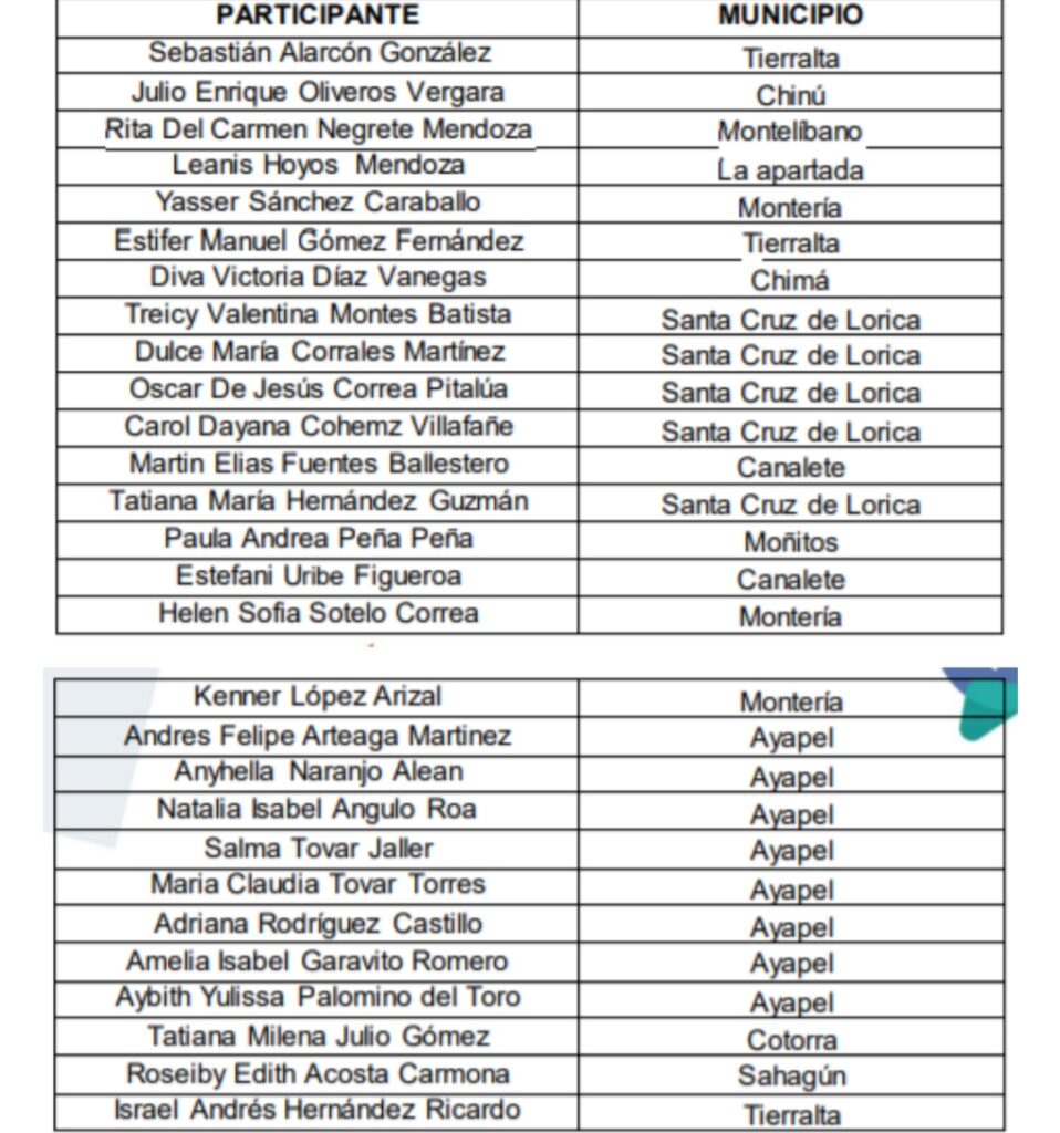 Finalmente, desde la Gobernación de Córdoba, les extendemos nuestras felicitaciones y gratitud a los 3 participantes ganadores de la etapa regional, así como a cada uno de los 25 participantes postulados, resaltando nuestro compromiso por los adolescentes y jóvenes de nuestro departamento a partir del fomento de actividades que generen interés y pertenencia por su territorio, como oportunidad clave para resaltar la importancia de nuestra región y el rol fundamental que cumplen en la construcción y transmisión de significados de la cultura y costumbres cordobesas.