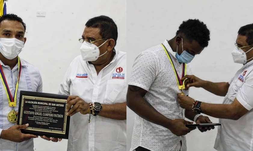 El alcalde de San Antero, Lormandy Martínez Durán, condecoró a los peloteros sananteranos Gustavo Ángel Campero y Leando Luis Emiliani tras la destacada participación que tuvieron con la Selección Colombia en el Mundial Sub-23 de Béisbol que se realizó en México.