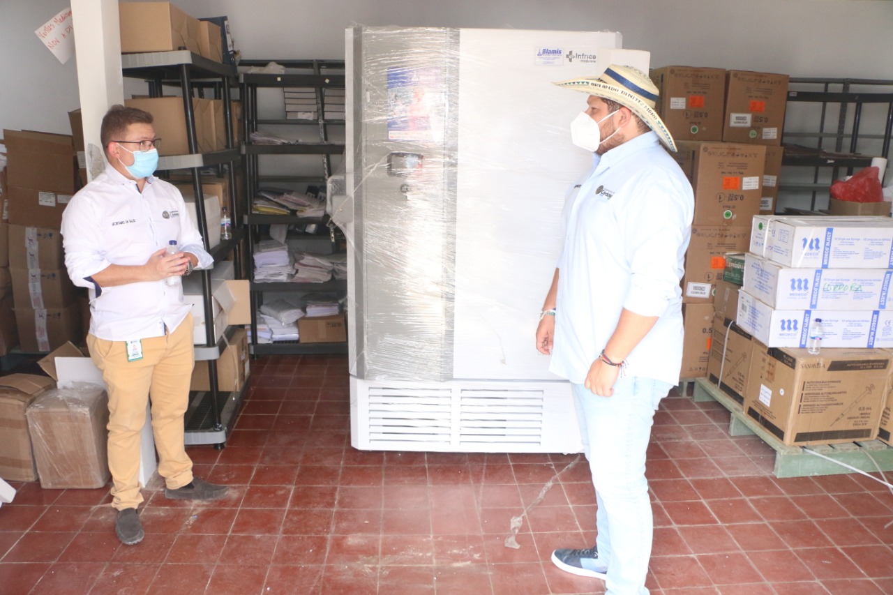 El Gobernador de Córdoba, Orlando Benítez Mora, recibió desde la Unidad de Gestión de Riesgo un ultracongelador de marca Infrico del laboratorio Blamis, con capacidad de 700 litros que permitirá almacenar las vacunas contra el COVID-19. Este ultracongelador se suma al que ya tiene la Secretaría de Desarrollo de la Salud con capacidad para 400 litros.