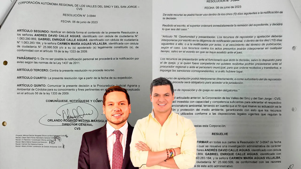 En las últimas horas la Corporación Autónoma Ambiental de los Valles del Sinú y San Jorge CVS confirmó una sanción ambiental contra el nuevo presidente de la Cámara de Representantes Andrés Calle y contra su hermano Gabriel Calle, precandidato a la Gobernación de Córdoba.