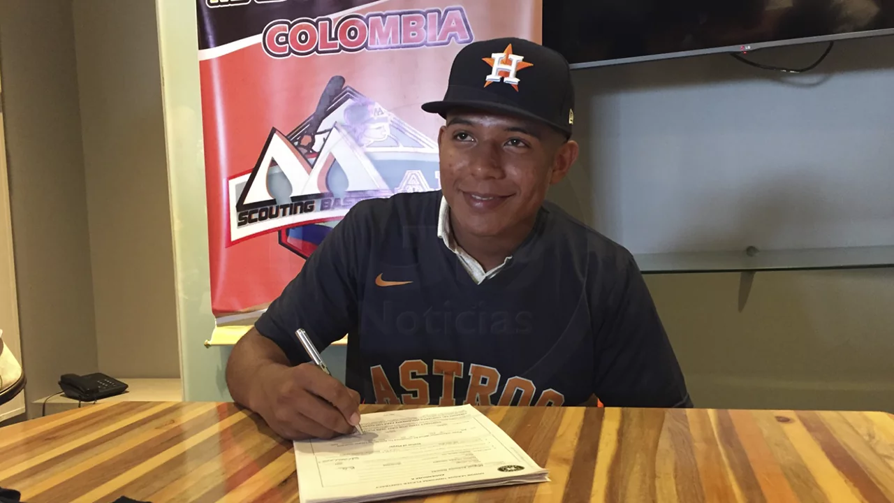El lanzador de 16 años, Miguel Antonio Gómez Ortega, fue firmado este lunes 30 de enero por la organización de los Astros de Houston en Montería.