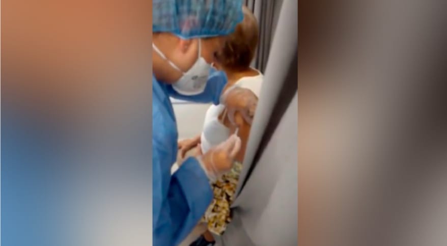 En Medellín se hizo viral el video de una adulta mayor que acudió a aplicarse la vacuna contra el coronavirus y debió ser pinchada dos veces, porque la primera vez la jeringa no tenía líquido, según denunció la familia.