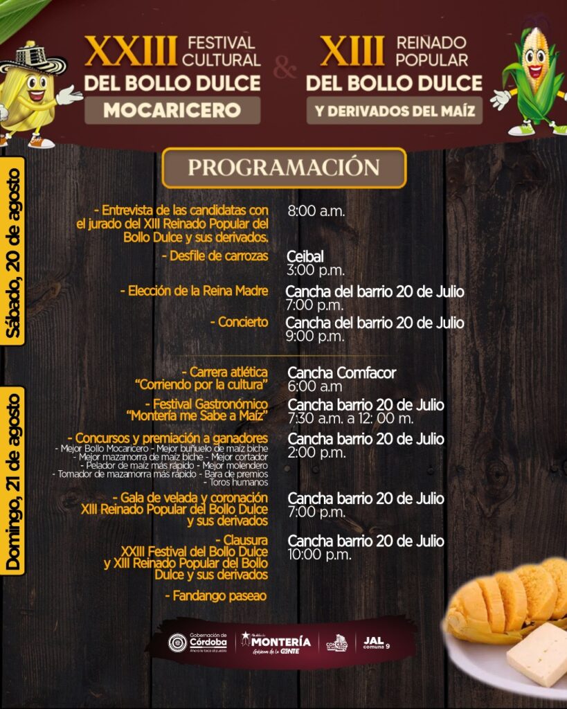 Montería, 19 de agosto de 2022. Desde hoy la capital cordobesa sabe a maíz y se engalana con mucha gastronomía, tradición y cultura en uno de sus eventos más representativos: el XXII Festival del Bollo Dulce Mocaricero y XIII Reinado Popular del Bollo Dulce y derivados del maíz. En el marco de esta celebración está otro importante Festival: Montería me sabe a maíz, donde se expondrá lo mejor y todos los productos elaborados de este alimento.