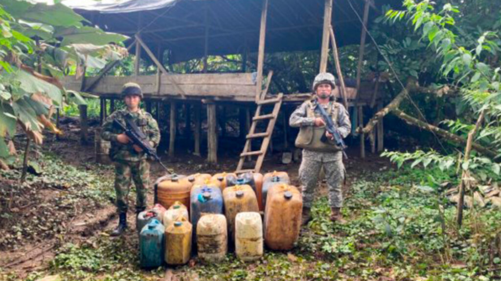 Según información de inteligencia, los laboratorios pertenecerían a los grupos armados organizados residuales “Bloque Occidental Alfonso Cano” y el “Frente Iván Ríos”, estructuras criminales que emplean el tráfico de drogas ilícitas como principal fuente de ingreso de dineros, con los que financian su accionar delictivo contra miembros de la Fuerza Pública y las comunidades que habitan en el Pacífico sur nariñense.