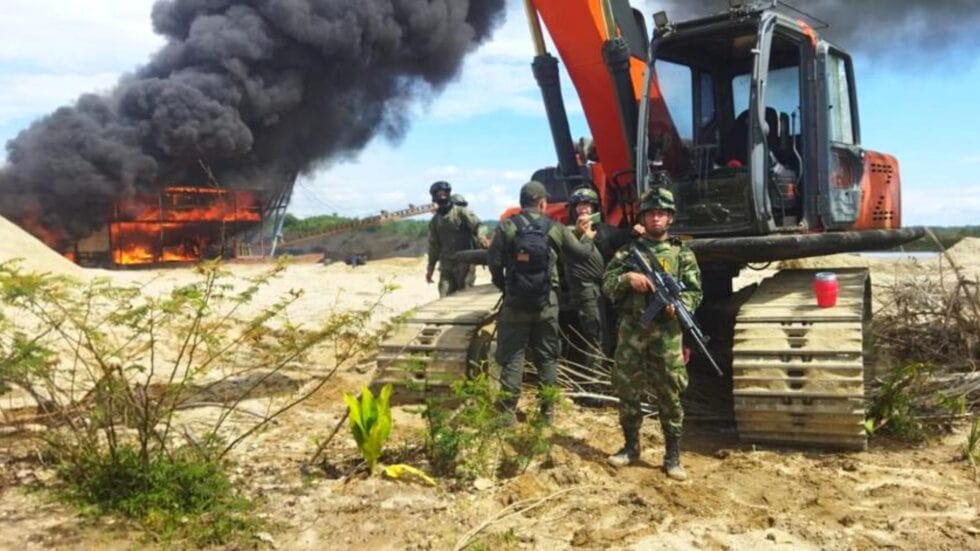 Las autoridades lograron la incautación y destrucción de maquinaria para la explotación ilícita de yacimientos mineros, la cual estaría al servicio de la organización armada ilegal ‘Clan del Golfo’, en el municipio de Zaragoza, Antioquia.