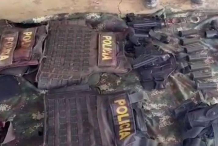 “Parte de guerra unidades de las fuerzas especiales en conjunto con la milicia bolivariana realizan una emboscada realizan una emboscada a dos motorizados en el municipio de morales cauca, arrojando los siguientes resultados: policías muertos, tres; policías heridos, uno; material recuperado: dos AC 22, un Galil 5.56, tres chalecos antibalas, una pechera, tres pistolas sig sauer con seis proveedores, tres pierneras, siete proveedores de galil, una esposa, noventa tiros de 9 mm, 220 cartuchos 5.56, dos gorras policiales, un teléfono iphone, dos teléfonos Samsung”, dice un hombre en el video.