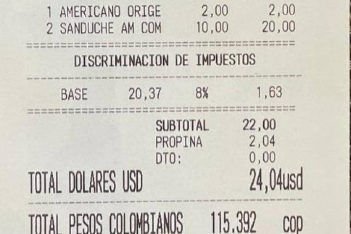 Inconforme está un pasajero que consumió dos sándwiches y un café en el Aeropuerto Internacional El Dorado, en Bogotá, debido al alto precio que tuvo que pagar por estos tres productos.