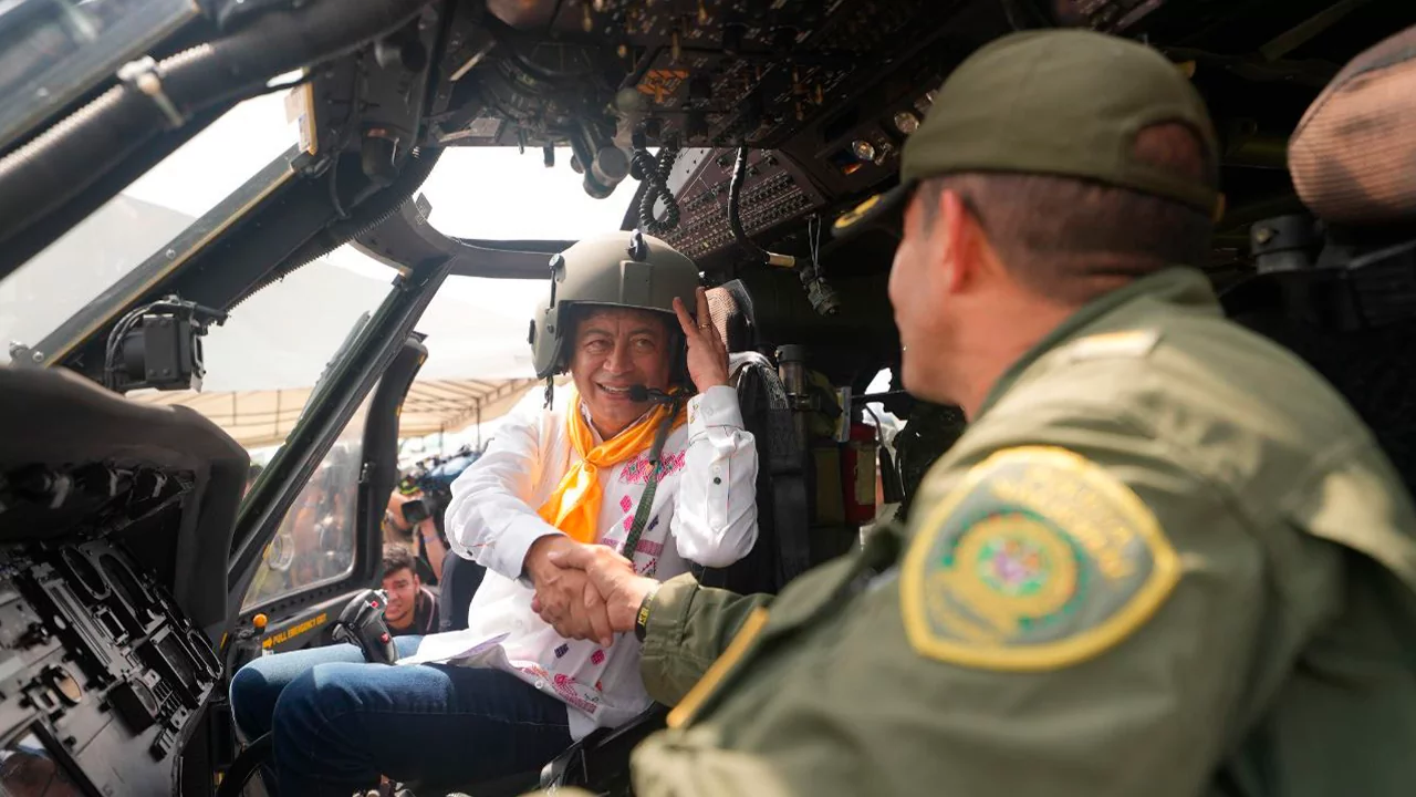 “Nosotros les agradecemos tanto la entrega del material. No es poco, doce helicópteros de alta tecnología, y su decisión política, que coincide en este momento con nosotros”, concluyó en su intervención el Presidente Petro.