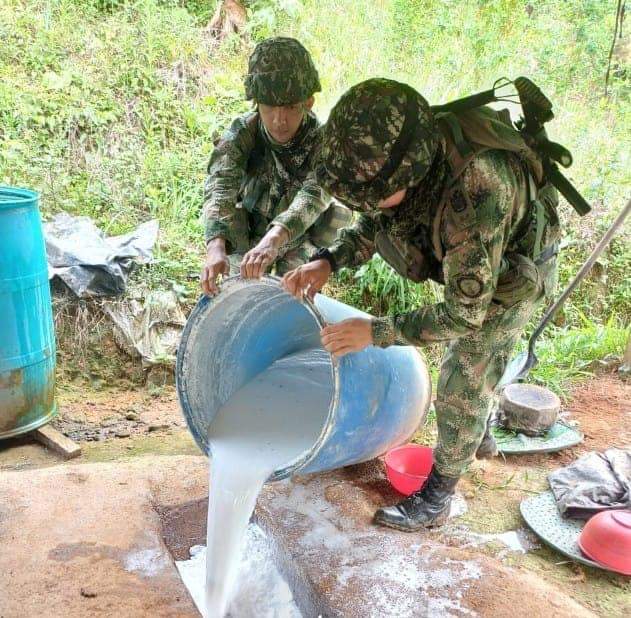 En cumplimiento del Plan de Campaña Operacional Ayacucho, soldados de la Décima Primera Brigada del Ejército Nacional lograron en las últimas horas la ubicación y destrucción de dos laboratorios para el procesamiento de pasta base de coca, uno de ellos en zona rural de Tarazá, Antioquia, al parecer perteneciente al ELN, y otro más en el sector de Algarrobo, municipio de Puerto Libertador, Córdoba, presuntamente del grupo armado organizado Clan del Golfo.