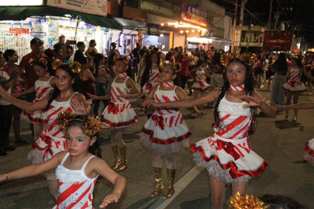 El colorido evento tuvo seis carrozas iluminadas, comparsas con danzantes de todas las edades, mucha música y personajes navideños, que llamarán la atención de chicos y grandes. Participaron veinte grupos de danzas, así como otros colectivos de 14 dependencias de la Alcaldía, entre secretarías y oficinas.