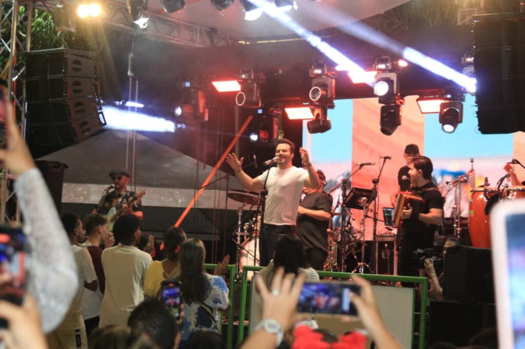 En tarima estuvo Gusi, con los temas que lo han hecho famoso, en los cuales fusiona ritmos como el vallenato y la cumbia con el pop. Estuvo acompañado por el acordeonero monteriano Camilo Molina y con su banda, interpretando temas que ha grabado y otros del folclor colombiano, que fueron coreados por el abundante público presente.