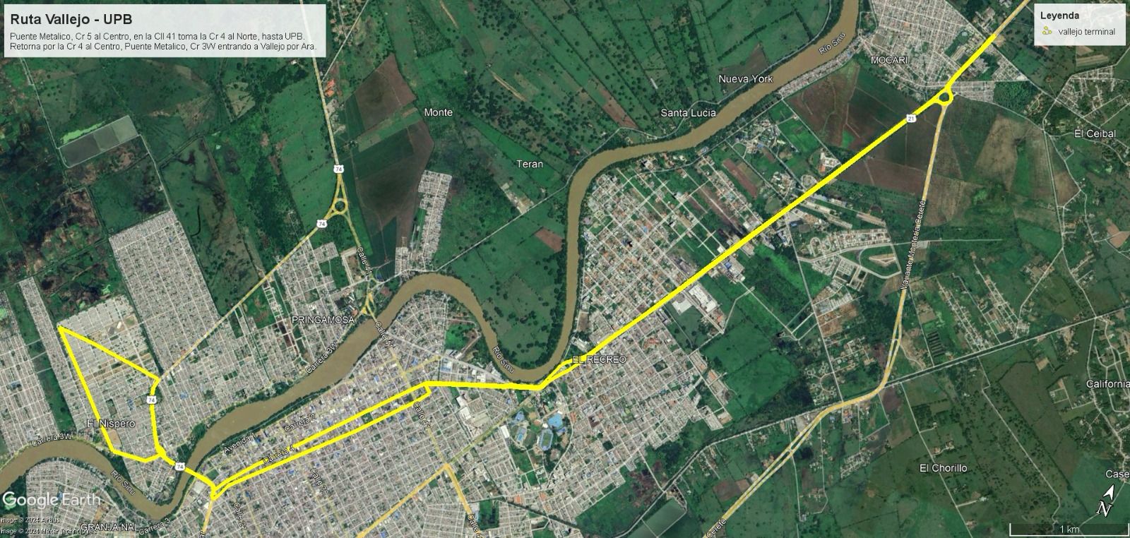 Entre los barrios beneficiados se encuentran Vallejo, Río de Janeiro, Betancí, La Ribera y Caracolí. Este es el recorrido que cubrirán los vehículos: puente metálico, carrera 5ª al Centro, calle 41, carrera 4 hacia el norte hasta la UPB; retorno por la Avenida Circunvalar, carrera 4ª hacia el Centro, puente metálico, carrera 3W; entrada a Vallejo por Ara, diagonal 22W hasta Olímpica, carrera 9W hacia el puente metálico.