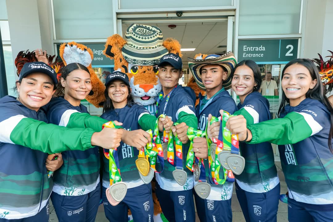En medio de aplausos y bailes autóctonos, fue recibida en el aeropuerto Los Garzones de Montería la delegación cordobesa de karate, que ganó 7 de las 12 medallas que hasta ahora ha logrado el departamento en los I Juegos Nacionales Juveniles Eje Cafetero 2024.