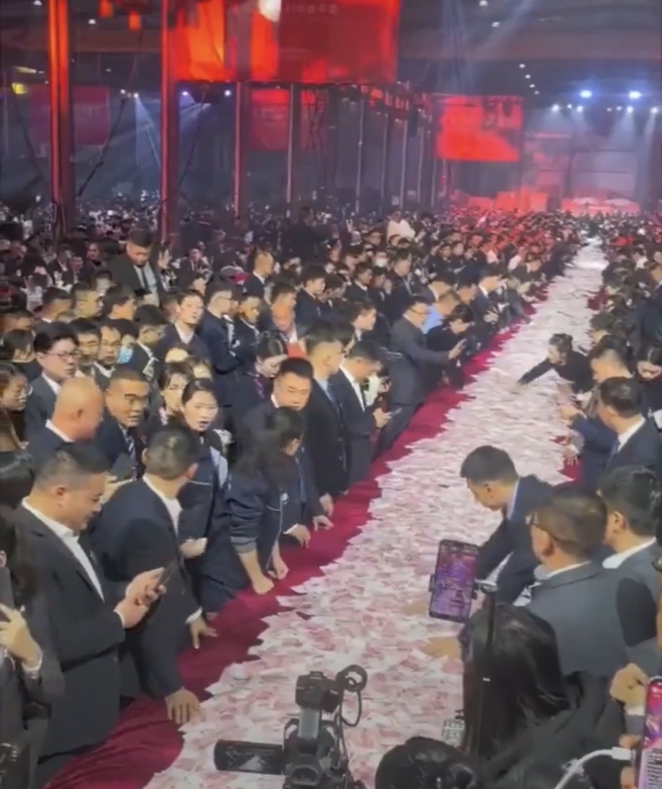 Los trabajadores podían llevarse a casa todo el dinero que lograban contar, hasta el punto de que algunos apenas podían sostenerlo entre las manos. Además, durante la gala varios empleados fueron invitados al escenario para recibir sus recompensas.