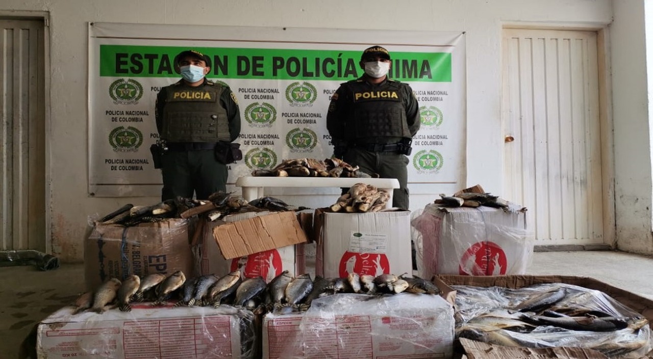 Chimá, Córdoba. En Desarrollo de actividades de vigilancia y control, La Policía Nacional a través de uniformados del Modelo Nacional de Vigilancia Comunitaria por Cuadrantes, logró la incautación de 240 kilos de pescado, avaluados aproximadamente en 3 millones de pesos.