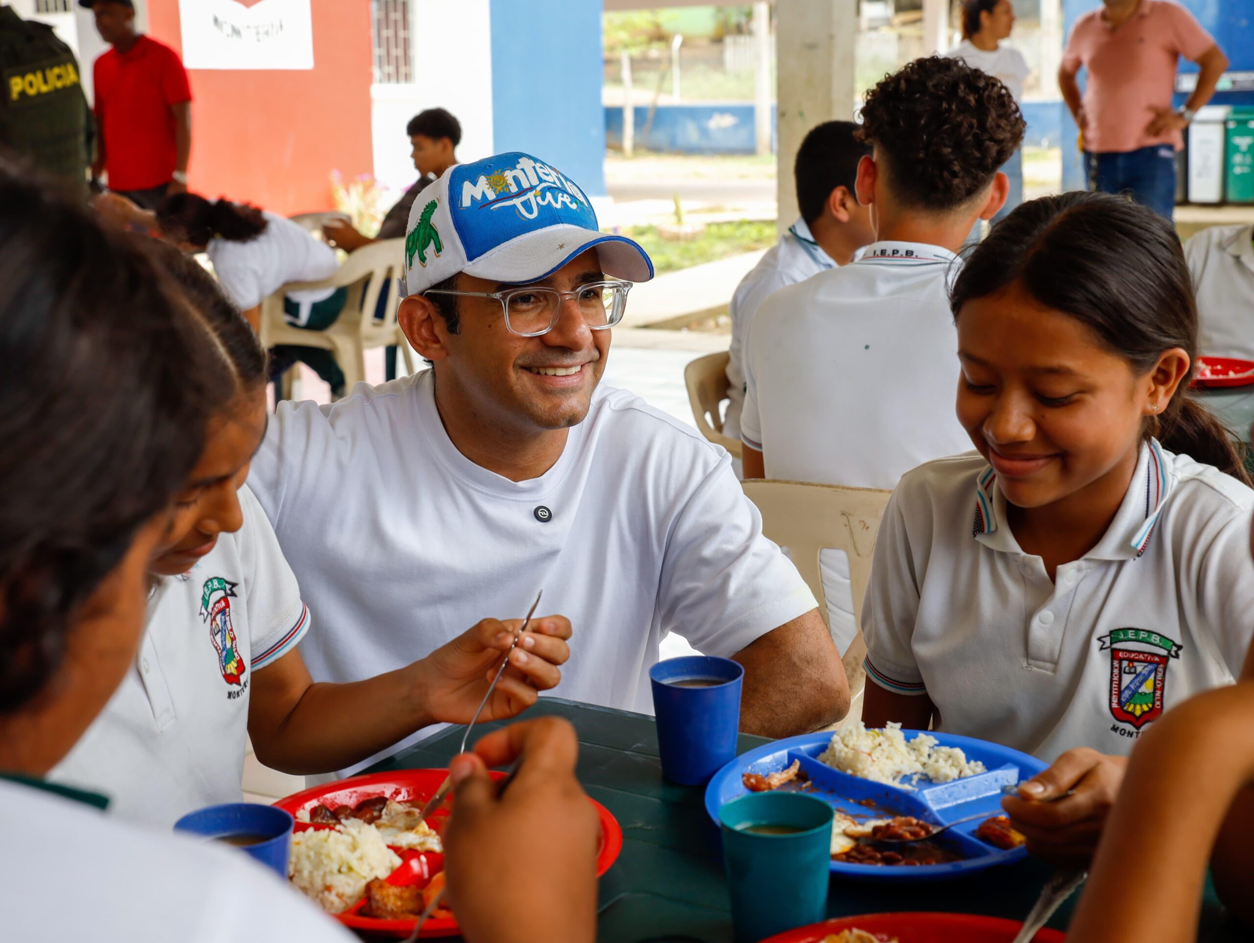 Montería, 6 de marzo de 2025. El alcalde de Montería, Hugo Kerguelén, visitó la Institución Educativa Pueblo Bujo para inspeccionar de primera mano la calidad de la alimentación que reciben los estudiantes como parte de la Ración Preparada en Sitio del Programa de Alimentación Escolar.