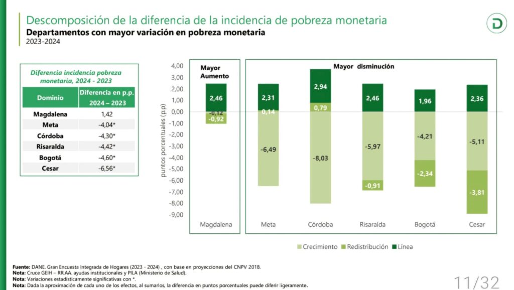 Montería, 3 de septiembre de 2025. Un informe revelado por el Departamento Administrativo Nacional de Estadística (DANE) confirma una reducción histórica en los índices de pobreza monetaria y pobreza extrema en el departamento durante el 2024, primer año de gestión del gobernador Erasmo Zuleta Bechara.