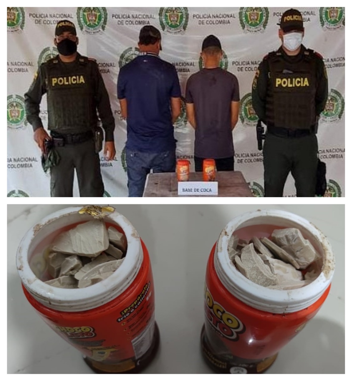 El procedimiento policial se llevó a cabo en la vía que conduce del municipio de Valencia a Montería, allí, los uniformados lograron percatarse de la presencia de los dos sujetos que se transportaban en una motocicleta portando dos tarros de Chocolisto sellados perfectamente y que parecían normales.