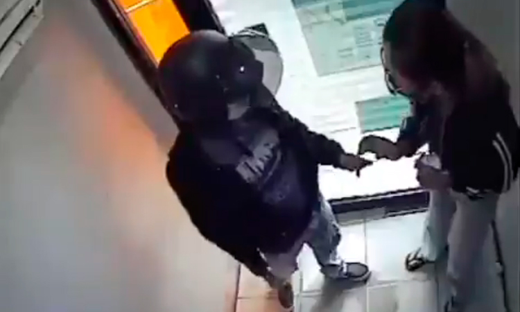 El hecho se presentó, al parecer, el pasado lunes, 28 de junio, cuando una mujer entró a las instalaciones de un cajero automático para retirar un dinero y fue abordada por un sujeto que también ingresó al cajero.