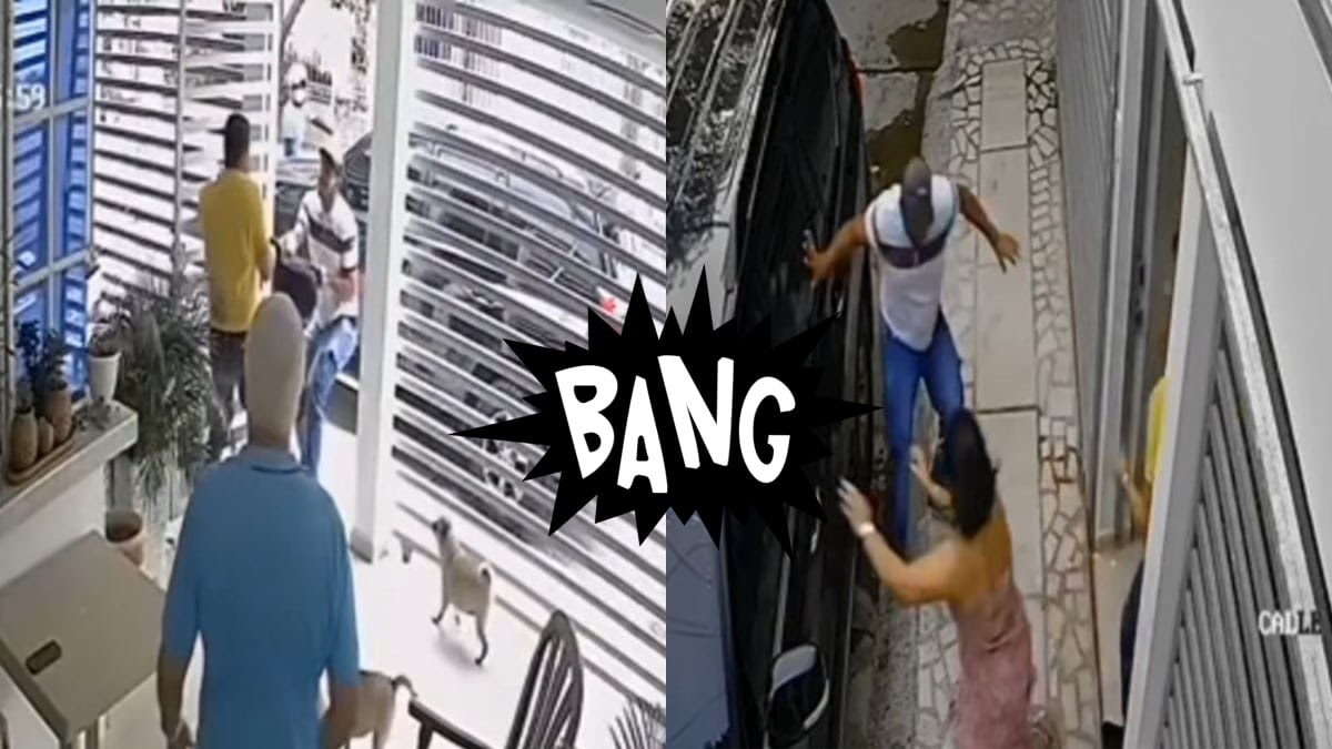 En el registro fílmico se observa como el hombre opone resistencia al delincuente que sin ningún tipo de arma intentó cometer la acción y acto seguido una mujer, quien se supo sería la pareja sentimental, al percatarse de lo ocurrido reaccionó propinando una patada ‘voladora’ al ladrón para sacarlo así del inmueble y que huyera junto su cómplice que lo esperaba en moto.