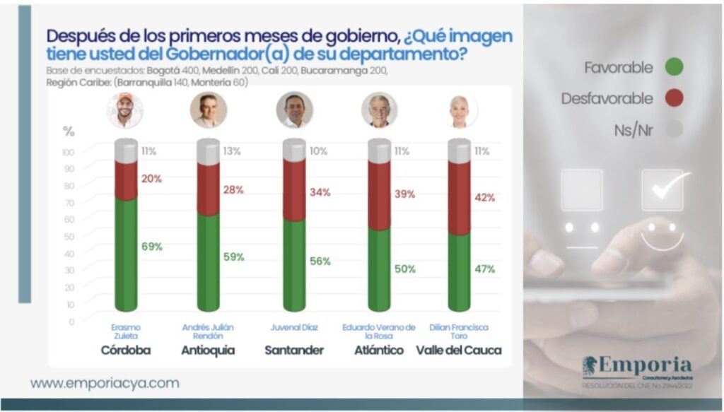Con un 69% de apoyo, el gobernador de Córdoba lidera encuesta de Emporia Consultores y Asociados, superando a otros cuatro mandatarios regionales.