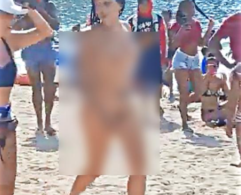 A pesar de que había una gran cantidad de personas disfrutando de un día de sol, mar y arena, una mujer decidió pasearse sin ropa por la playa de este parador turístico; sin importar los reproches de algunos bañistas que se encontraban allí en compañía de menores de edad, esta también se puso a bailar desnuda con varios hombres que se encontraban en el lugar.