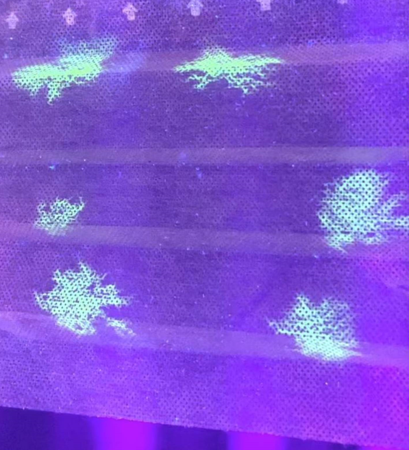 Para tener en cuenta este estudio, fueron analizadas 32 personas quienes usaron este tapabocas durante 8 horas antes de ser rociados con el líquido que hace que estos productos brillen detectando la enfermedad de la Covid-19.