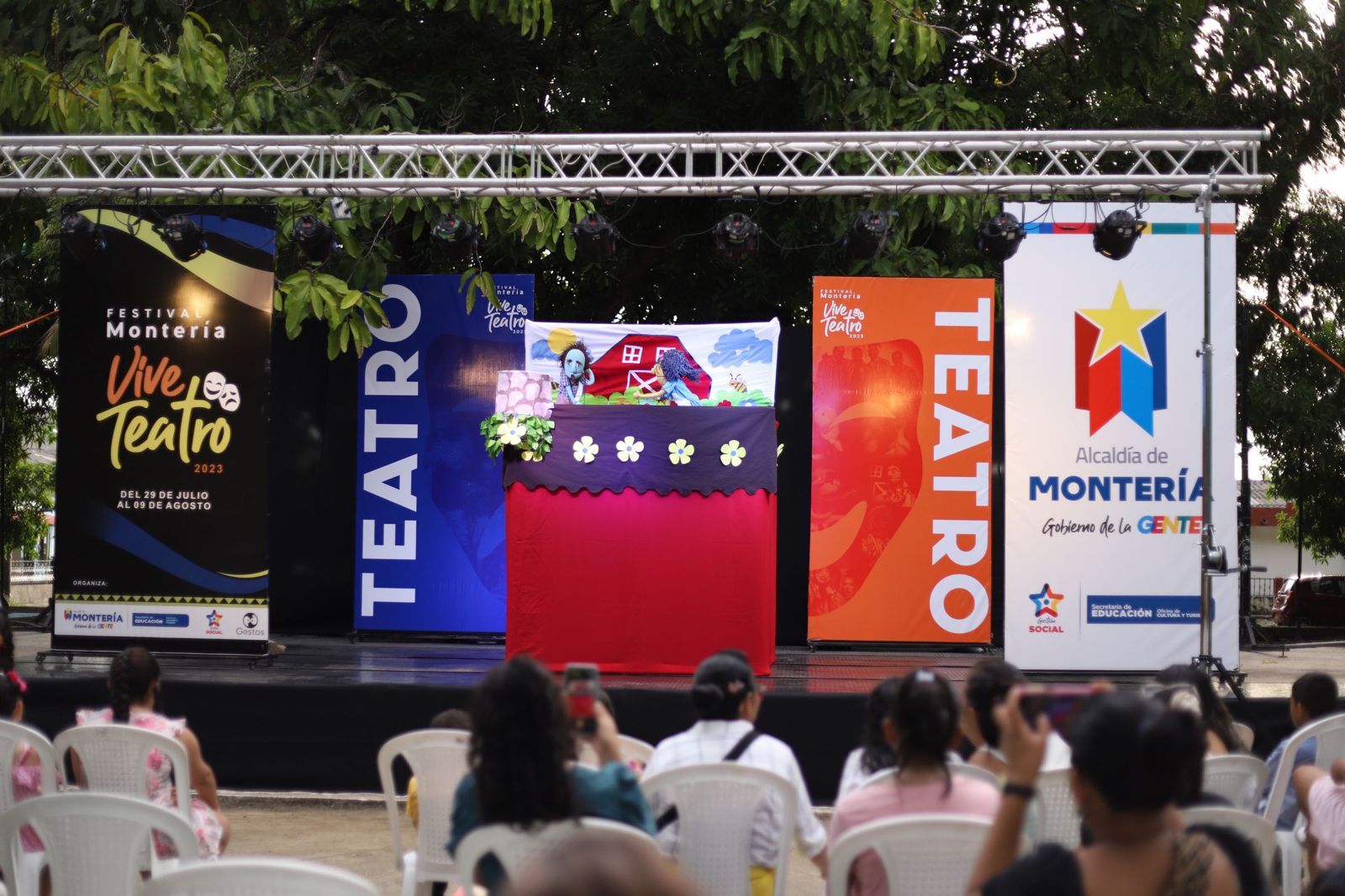 Montería, 8 de agosto de 2023 Las familias monterianas disfrutaron de una nueva jornada del Festival Montería Vive Teatro, luego de que esta iniciativa llegara hasta la Comuna 3 y se tomara el Parque El Divino Niño, ubicado en el barrio La Granja.