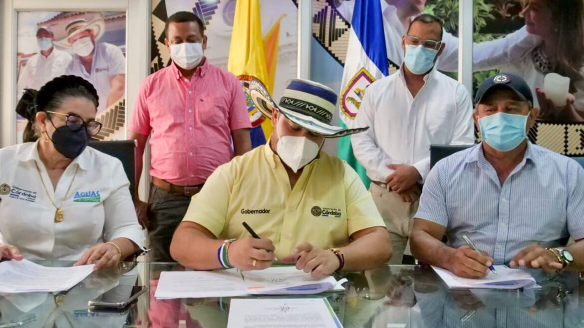 La Gobernación, Aguas de Córdoba y la Alcaldía de Valencia, firmaron el convenio por medio del cual se desarrollarán obras de optimización y sectorización hidráulica del sistema de acueducto del municipio de Valencia, en el Alto Sinú.