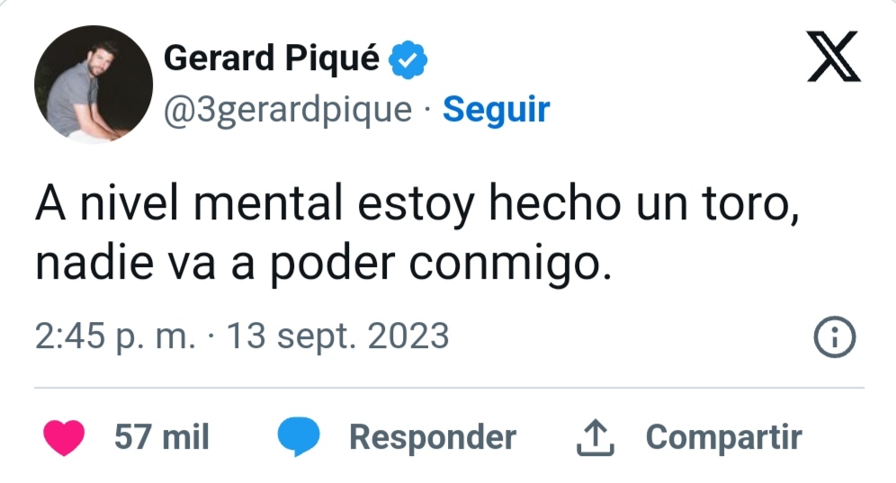 Como no podía ser de otra manera, muchos de sus seguidores han interpretado este mensaje como una reacción de Piqué a la actuación de Shakira. El exfutbolista ha dejado claro que no le ha preocupado en absoluto todas las indirectas que su ex le ha mandado a través de las letras de sus canciones. De hecho, asegura que nadie va a poder con él y que está más fuerte que nunca.