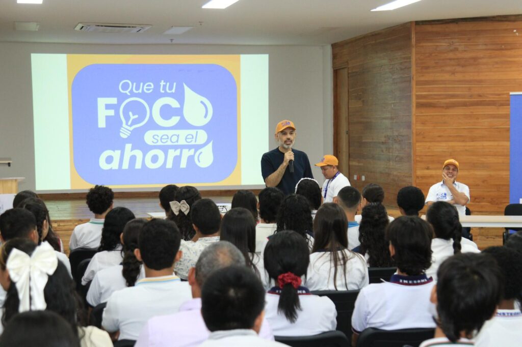 Montería, 29 de agosto de 2024. Con un mensaje contundente y claro sobre la importancia de que se conviertan en líderes y veedores del ahorro del agua y la energía en las instituciones educativas oficiales, el Gerente de Ciudad, Edgardo Miguel Espitia Cabrales, lanzó la campaña ‘Que tu foco sea el ahorro’, ante delegaciones estudiantiles de establecimientos urbanos y rurales a cargo del municipio.
