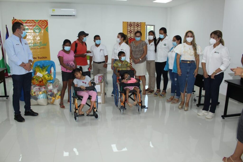 Tras conocer la solicitud de una familia de la comunidad indígena Zenú, asentada en el municipio de Tuchin, cuyos hijos padecen parálisis cerebral, la gestora social del departamento se desplazó hasta este municipio para entregar ayudas y ofrecer apoyo, que permita mejorar su calidad de vida.