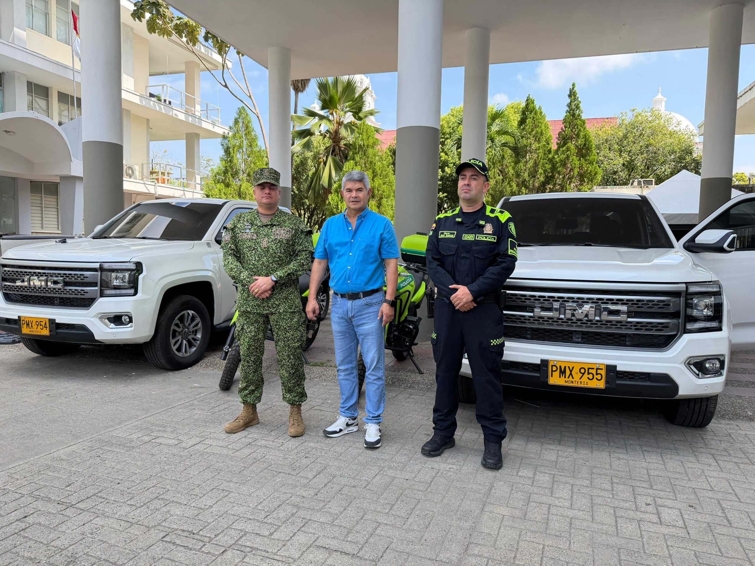 La entrega la realizó el secretario de Interior y Participación Ciudadana, Gerardo Rodríguez Llorente. Los vehículos fueron recibidos por el Coronel Yerly Alexander Carreño de la Infantería de Marina y por el Mayor Jhony Rugeles, representante de la Policía Fiscal y Aduanera del departamento de Córdoba.