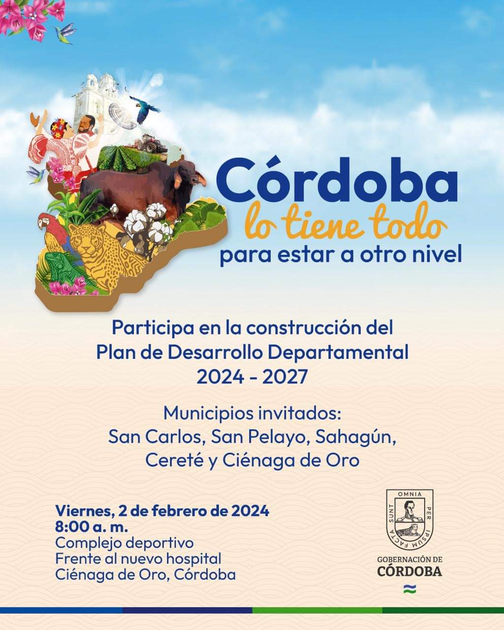 Los interesados en conocer los contenidos de las mesas e inscribirse para participar pueden acceder al siguiente enlace: https://www.cordoba.gov.co/publicaciones/819/formulacion-del-plan-de-desarrollo-departamental-cordoba-primero-2024-2027/