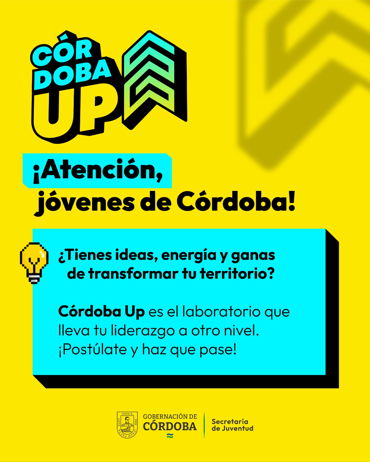 Con esta iniciativa, la Gobernación de Córdoba reafirma su apuesta por fortalecer el liderazgo juvenil como motor de transformación social y desarrollo territorial. Córdoba Up es una oportunidad para que las nuevas generaciones se preparen, participen y hagan parte activa de los cambios que necesita el departamento.