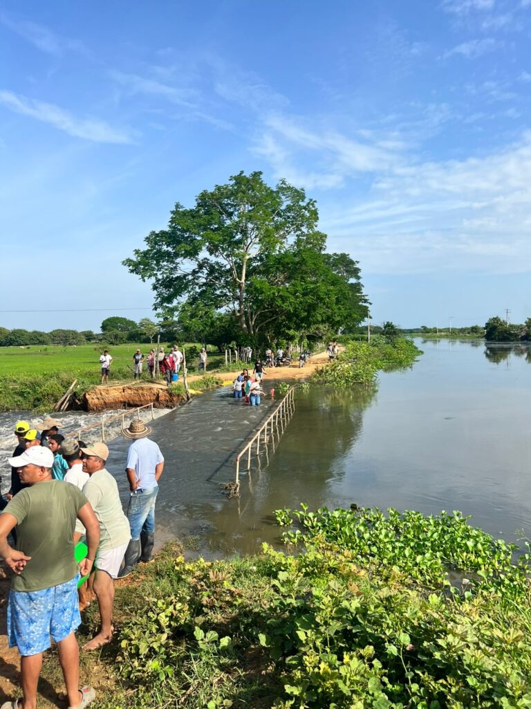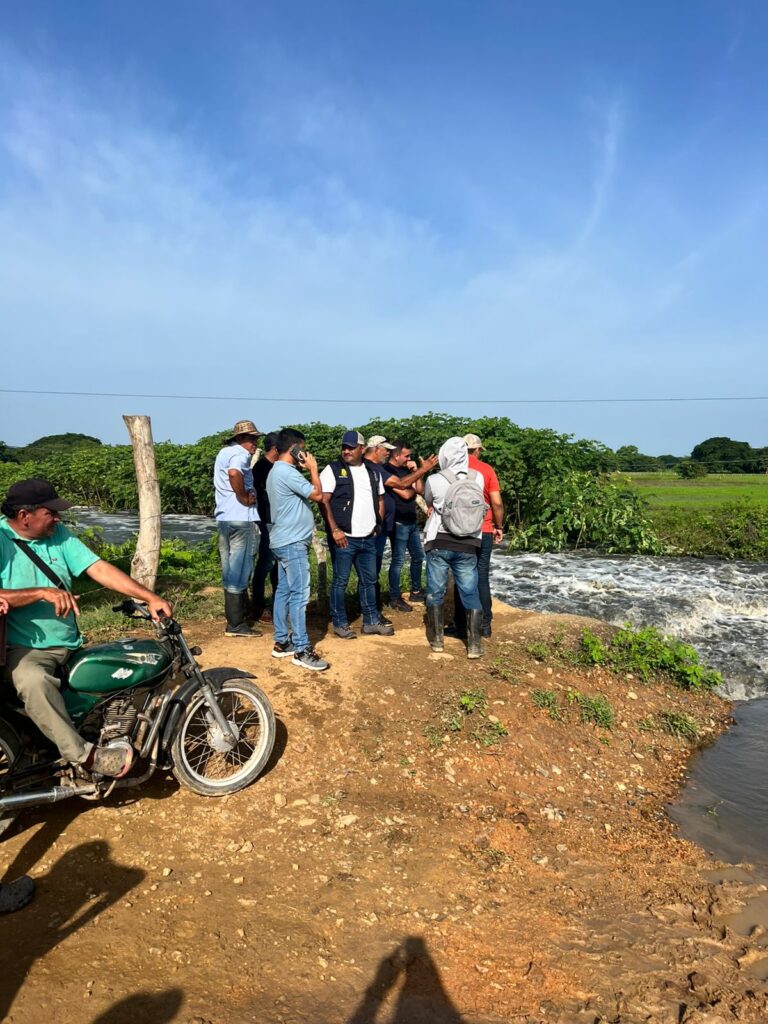 Ciénaga de Oro, 31 de agosto de 2025.- La Dirección Técnica y Ambiental de Riesgos de la Gobernación de Córdoba se trasladó hoy al corregimiento de Punta de Yánez, zona rural de Ciénaga de Oro, para acompañar a la administración municipal en la atención de la ruptura del jarillón sobre el caño Mocho, y verificar la situación del colapso del puente que comunica a la vereda Bocacatabre, lo cual mantiene incomunicadas a varias comunidades y afecta la economía campesina.