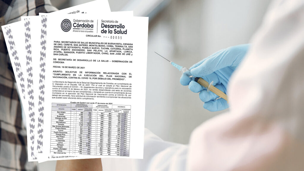 Con carácter ‘urgente’, la Gobernación de Córdoba, a través de la Secretaría de Salud Departamental, ofició a los municipios que están por debajo del promedio de vacunación, lo que ha derivado en que el Ministerio de Salud suspenda la asignación de vacunas al departamento.
