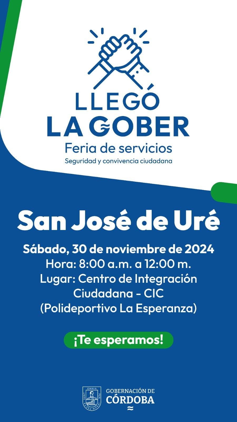 Mañana sábado, el programa «Llegó la Gober» se instalará en el Polideportivo La Esperanza de San José de Uré, llevando una amplia gama de servicios institucionales a la comunidad. Desde las 8:00 a.m. hasta las 12:00 m., los ciudadanos tendrán la oportunidad de acceder a servicios de salud, educación, infraestructura y gestión social, entre otros.