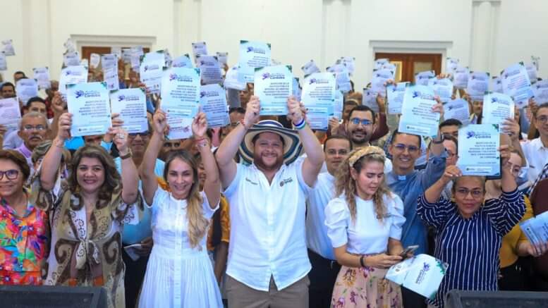 El Gobernador Orlando Benítez Mora, acompañado de miembros del sector intereligioso del departamento, la Gestora Social Martha Ruíz, la senadora Lorena Rios, diputados y fuerzas vivas de Córdoba, entregaron la ordenanza #026 de diciembre de 2022.