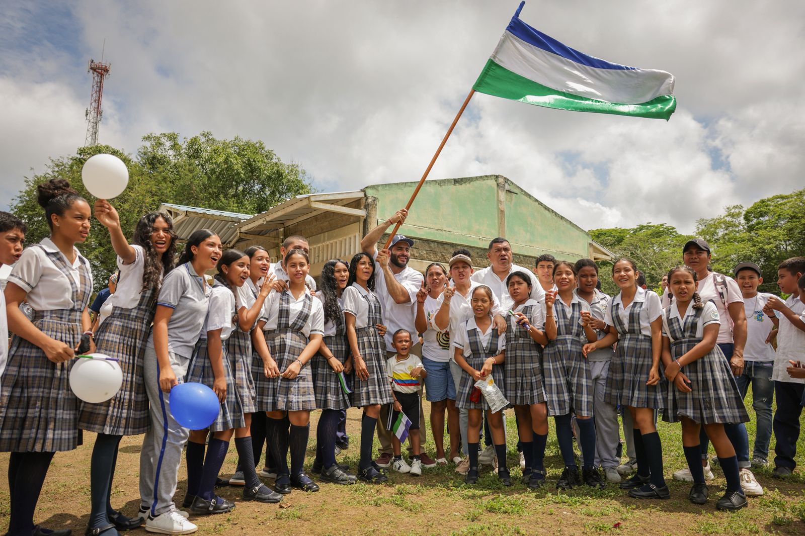 Frente a una multitud colmada de sonrisas, el gobernador anunció la reconstrucción de un moderno comedor escolar de 80,96 metros cuadrados, completamente dotado, que transformará las condiciones de alimentación de los estudiantes de la Institución Educativa El Ébano, sede principal.
